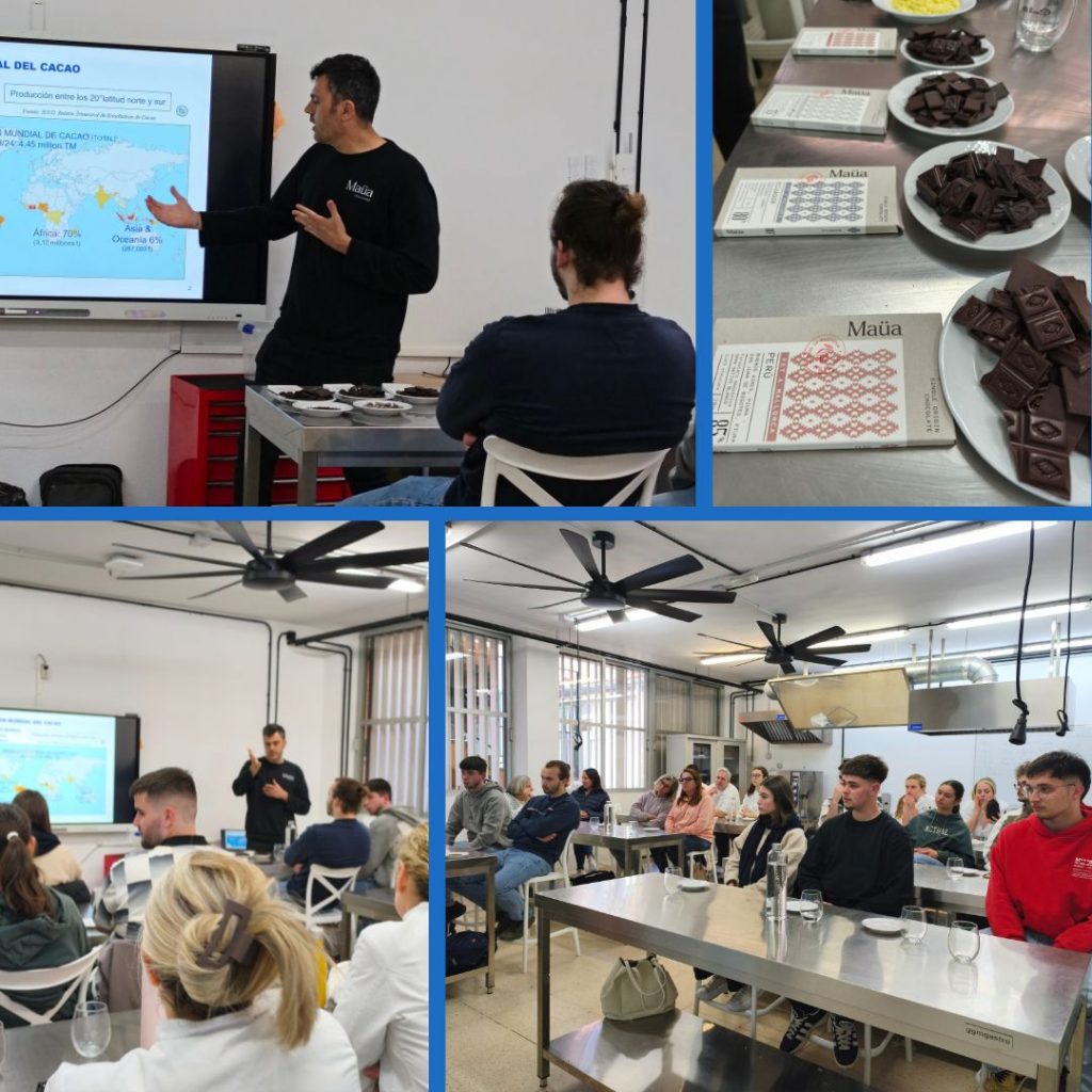En Jaume Martorell de Chocolates Maüa, ha vingut al centre, on els alumnes de 2n de GM Tècnic en Cuina i Gastronomia, 2n de GS de Direcció de Cuina i els Curs d’Especialització de Pans i Brioixeria Artesans; han participat del concepte Bean to Bar ” Del gra a la xocolata” i a una cata de xocolates.