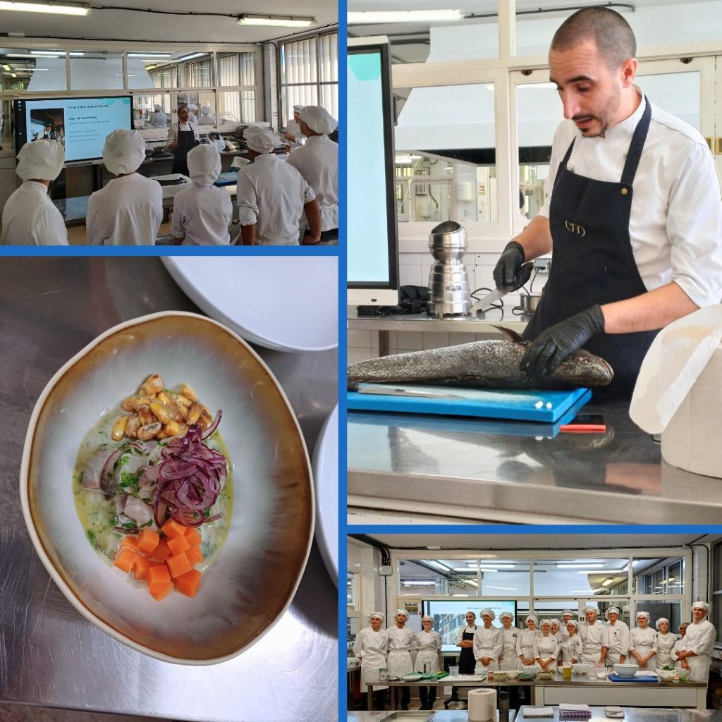 Vam aprendre molt dels peixos, concretament ens va mostrar l’especejament d’una corvina i la preparació d’un ceviche. Moltes gràcies a n’Edgar per la teva dedicació, al restaurant Caballito de Mar per poder comptar amb la vostra confiança per al nostre alumnat en pràctiques, i al seu proveïdor Xutipesca que ens va regalar la corvina.